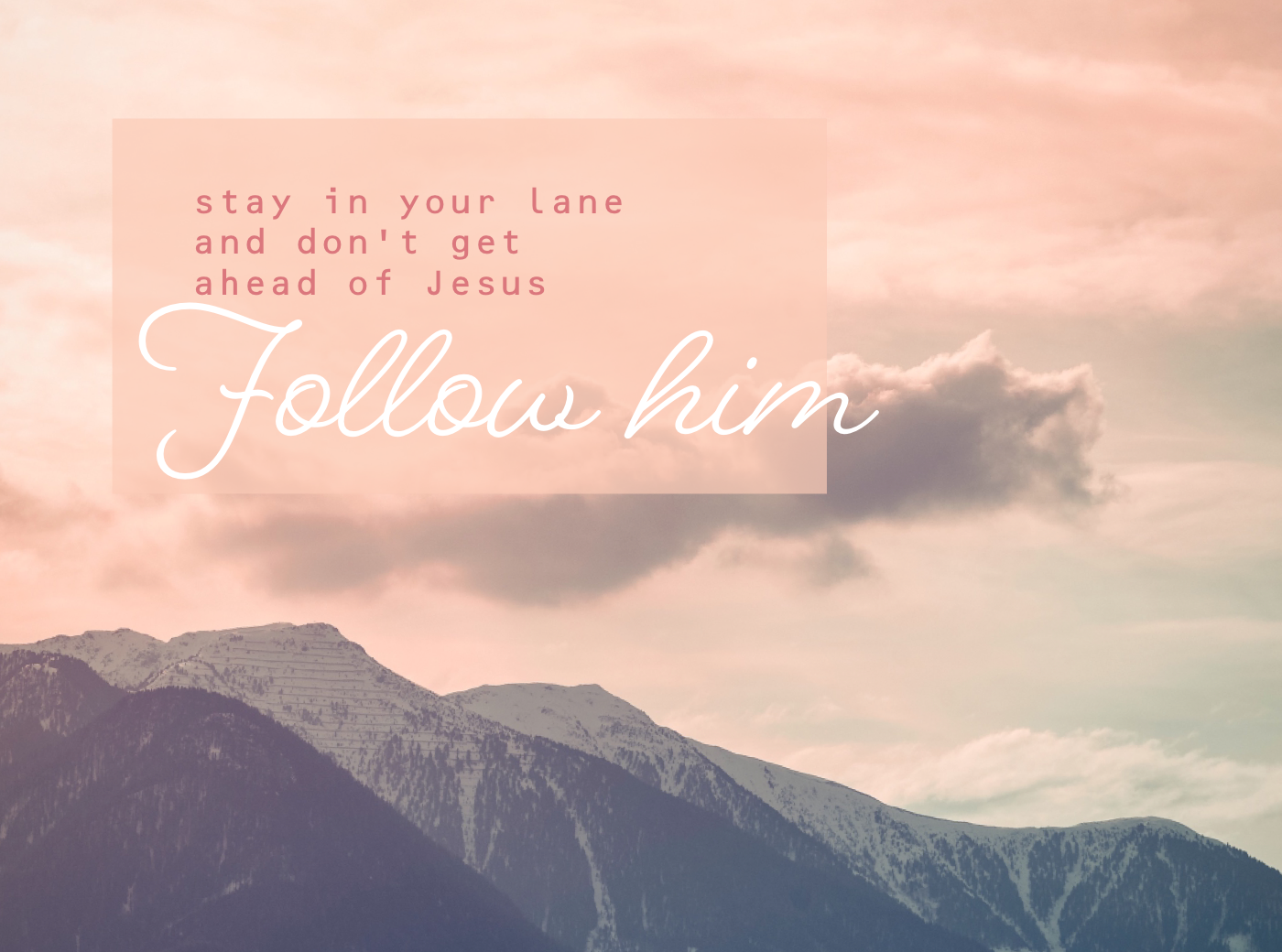 Deb Peacock 9/19/21 Deb Peacock 9/19/21 Stay in your lane and don’t get ahead of Jesus. Follow him. Read More